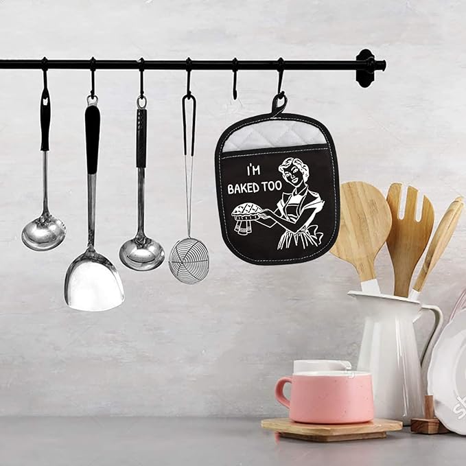 Novelty Baking Gift Heat Resistant Potholder Oven Pad with Pocket I’m Baked Too Funny Baker Gift for Mom Sister Friend (I'm Baked Too Black)
