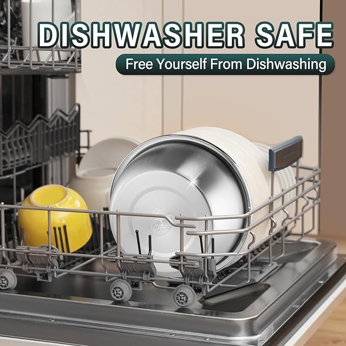 • Colander set is made of 304 stanless steel, which is safe, healthy and durable for every day use. It won't retain odors like some plastics. The edges of the colander & bowl are nicely rounded over and inner wall adopts mirror polishing technology, which is smooth,bright and easy to clean. Both are dishwasher safe.