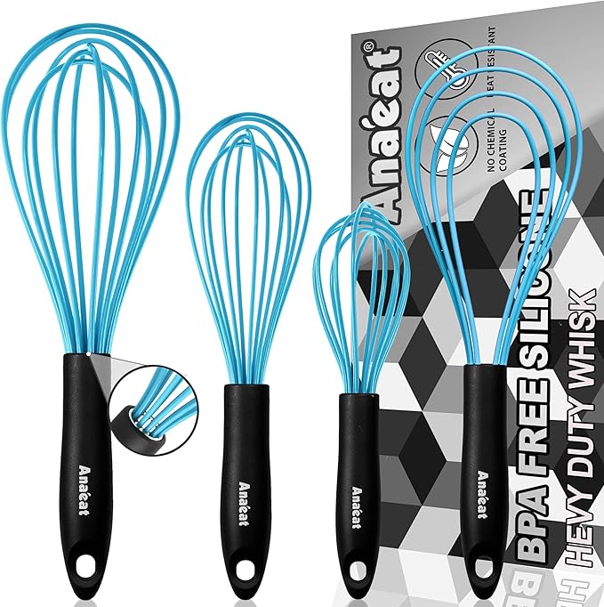 • HEAT RESISTANT & DURABLE & HEALTHY - Silicones are resistant to heat up to 450 degrees Fahrenheit, making them ideal for cooking almost any favorite food. Anaeat WHISK won't discolor, warp or melt. Easy to clean - Dishwasher safe.
