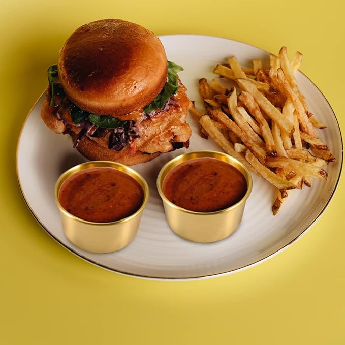 • Package include 12 x 60ml 0.25 fl oz Amytalk Golden Ramekin Dipping Sauce Cup