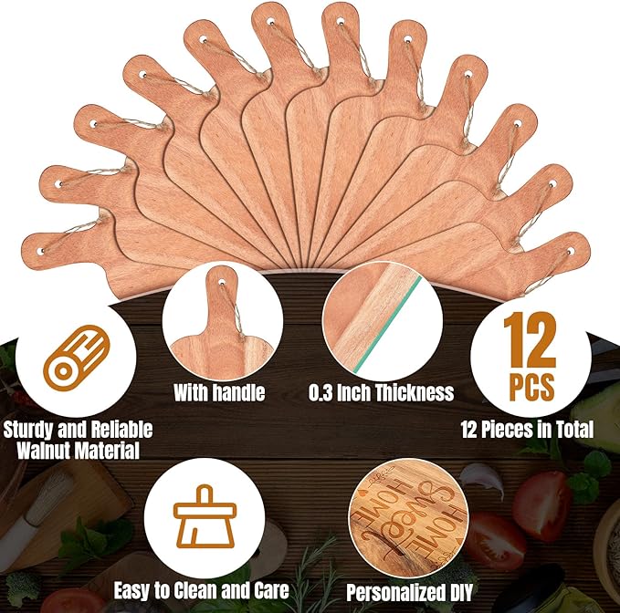Patelai 12 Packs Wooden Cutting Board Set with Handles Large Kitchen Serving Plain Chopping Board Bulk Gifts for Mom for Vegetables Meat Pizza Cheese Fruit Bread(Walnut,15 x 7 Inch)