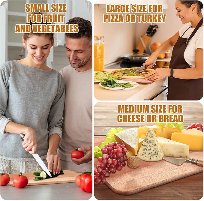 • Wide Application: enjoying nice durability, with a smooth and durable texture, these wooden cutting boards for kitchen are ideal for efficiently and cleanly cut your meat, fruits and vegetables without any trouble, and also can be served for cheese, bread, steaks or charcuterie; They are also ideal gifts for Mother's Day and housewarming parties, a versatile product for your daily using, crating a greener life to you and your family