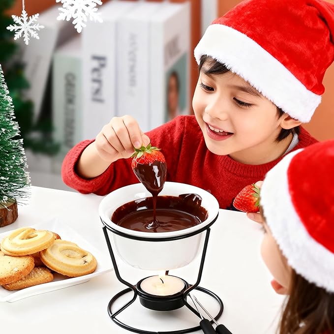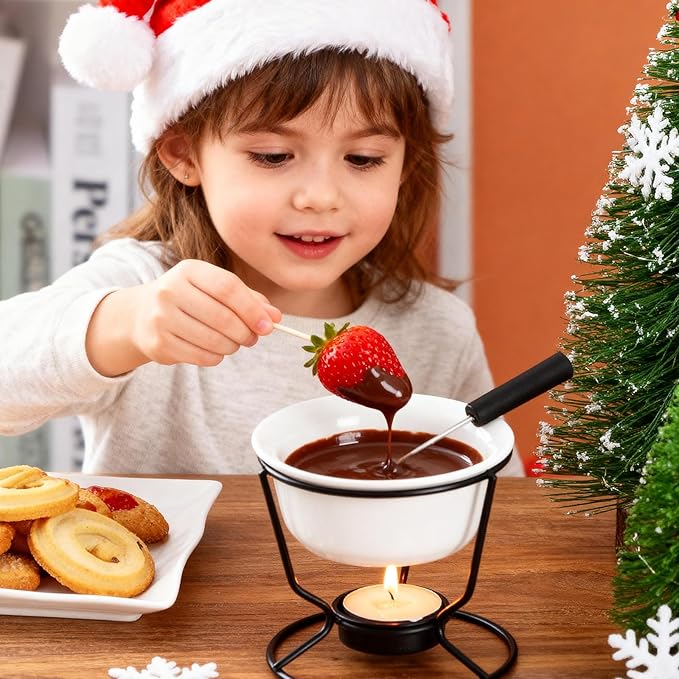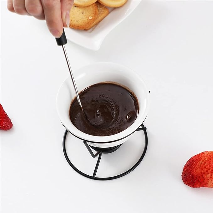 • 【Quality Design】- Metal wire stands suspend pots over tea lights, allowing you to serve perfect melted butter for dinner or dessert fondue. Dishwasher safe ceramic cups keep contents warm without burning.