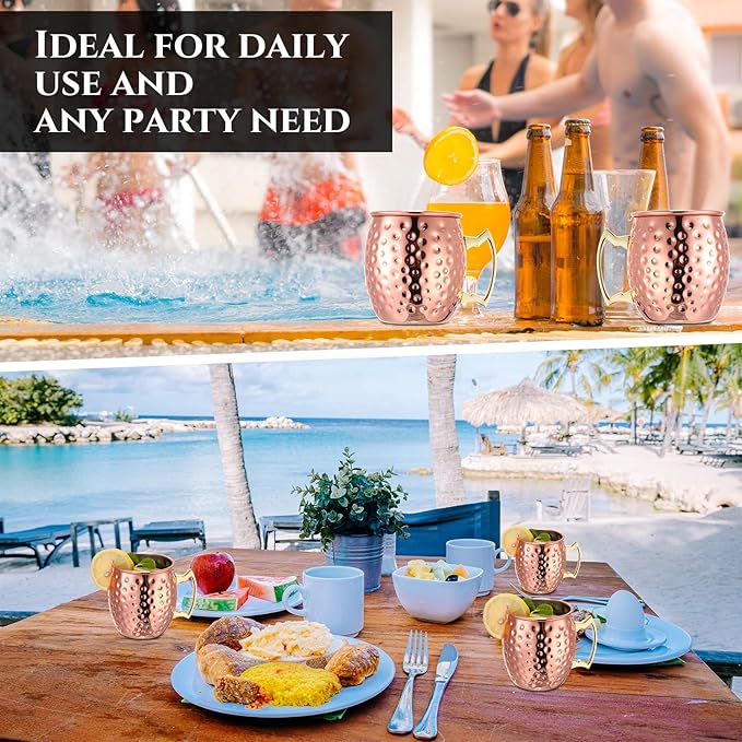 • Scratch-Resistant Design: With hammered texture and rose gold copper paint, the moscow mugs resist dents, scratches, rust, and tarnish. Their durable walls and elegant shine make them a reliable choice for home gatherings, restaurants, or festive events