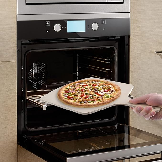 • PERFECT SIZE FOR YOUR PIZZA AND HANDS - The large pizza peel is 12"*17" with 5" handle which is big enough to put your pizza on and retrieve it back out of the oven without heating your hand.