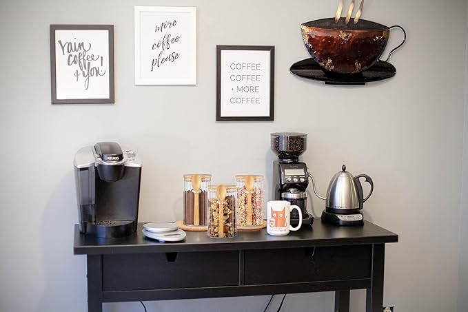 • Classy Kitchen Canisters: Clear lines design coffee jar adds a vintage & modern accent decor. It is not only a practical glass jar set, also a nice decorative Jar, ideal for Home Kitchen, Counter Top, Coffee Bar, Bakery Store, Restaurant, Hotel, to keep your kitchen organization and be your charming & useful overnight oats jars.