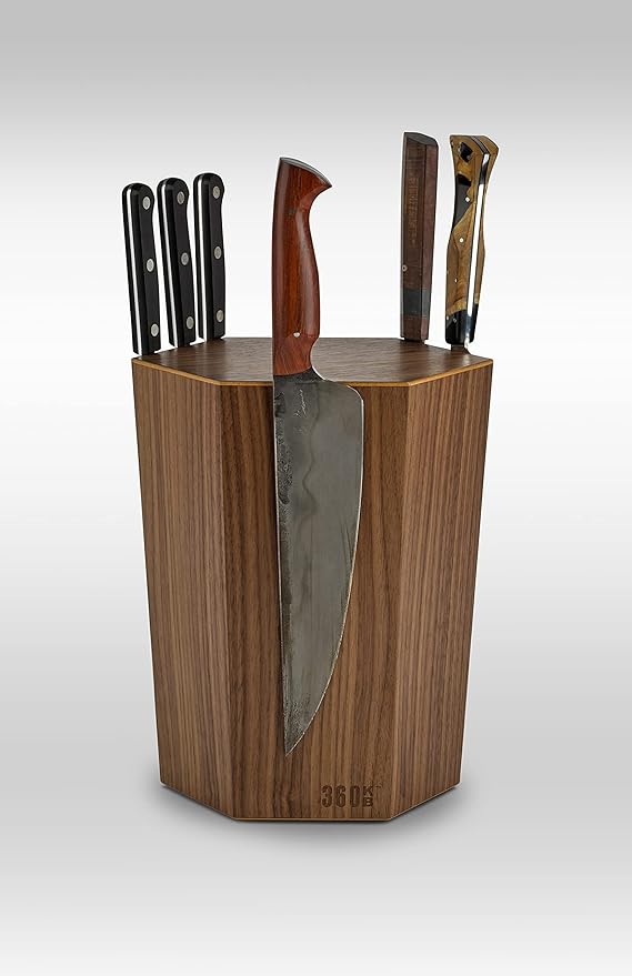 • The best mix of knife capacity, size for under upper cabinets, easy to clean and beautiful. The 360KnifeBlock - 360KB - turns our most important cooking tool into a kitchen statement piece.