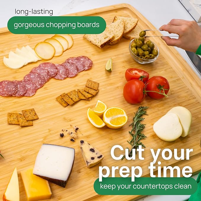 • SUSTAINABLE & GUARANTEED FOR LIFE – Made from 100% eco-friendly bamboo, naturally non-porous and reversible for safe food prep. Backed by our Lifetime Replacement Guarantee for worry-free use in every kitchen.