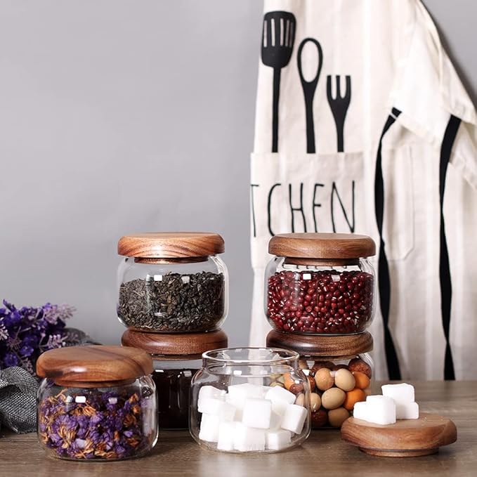 • CUTE:I really like these cute mini glass jars.6 pcs glass spice containers can help you sort and store a lot of items to make your pantry tidy and beautiful