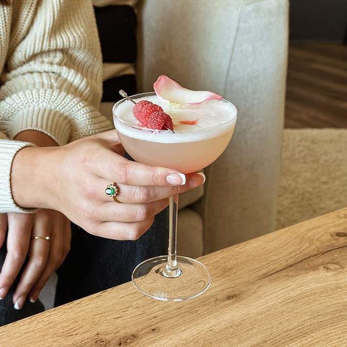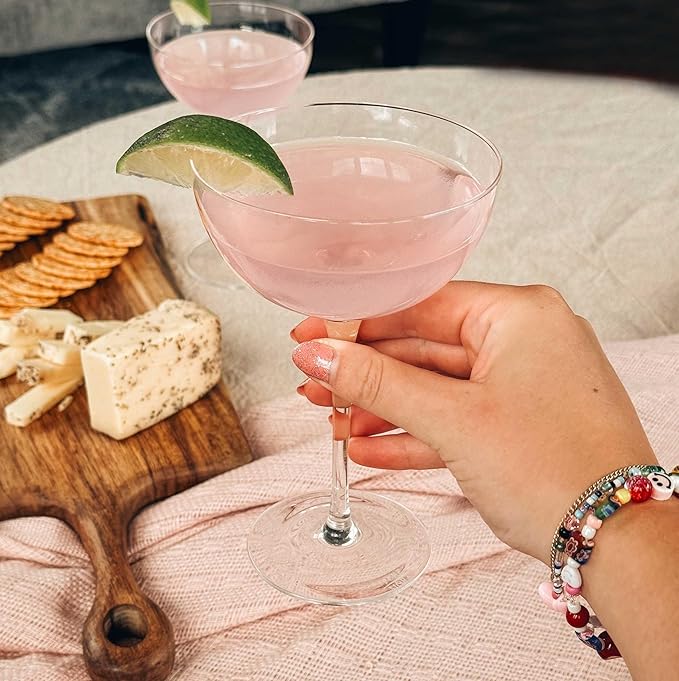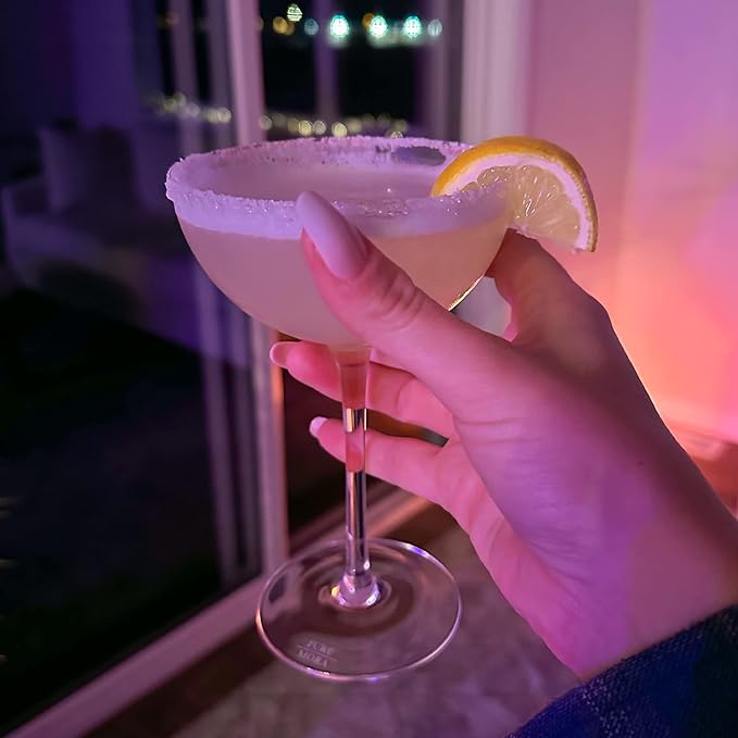 • MEET THE BRAND - Pure Mora is more than glassware. The name Mora is Latin for "slow down", so we are a reminder to chill and relax. The Lyra is Greek for harp which gives soft and feminine vibes, perfect for the curvy shape of the coupe. Hit Pause with us, it's happy hour.