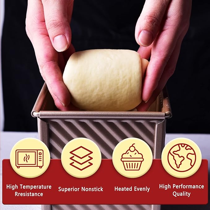 SUNCITY Aluminized Steel Pullman Loaf Pan With Lid, 2.2 lb Nonstick Loaf Pan for Baking Bread, Yeast Breads, Pound Cakes, Meat Loafs (Gold)