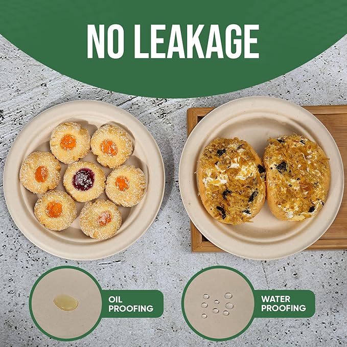 • PLANET-FRIENDLY PLATES: Go green with TaidMiao sustainably crafted and heavy-duty paper plates, made from 100% biodegradable sugarcane pulp. Not only are these disposable plates good for the environment, but they're also water and oil-proof, so you can enjoy soups and stews without ever worrying about your plate getting soggy.