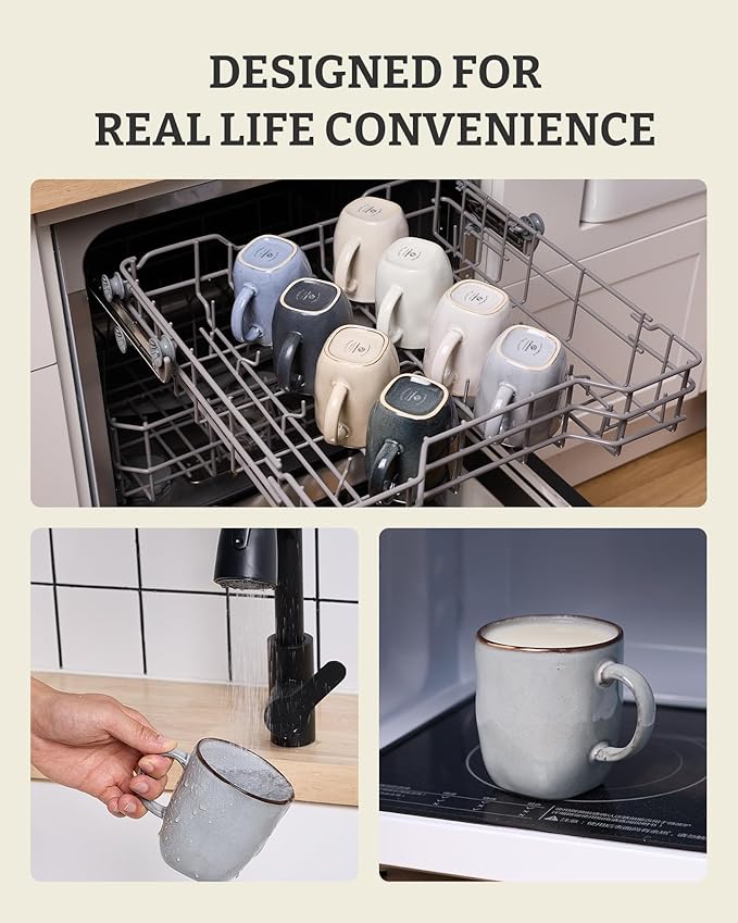 • 【Dishwasher and Microwave Safe】 Famiware Stoneware coffee cups for the kitchen are made of premium stoneware. Each plate and bowl is dishwasher and microwave safe.