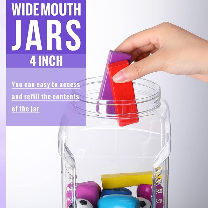• Thoughtful Design: the practical design of these clear wide mouth canisters makes them easy to handle and space efficient for shipping and shelving; The clear PET plastic allows you to see what's inside, while the square body and base make them easy to stack