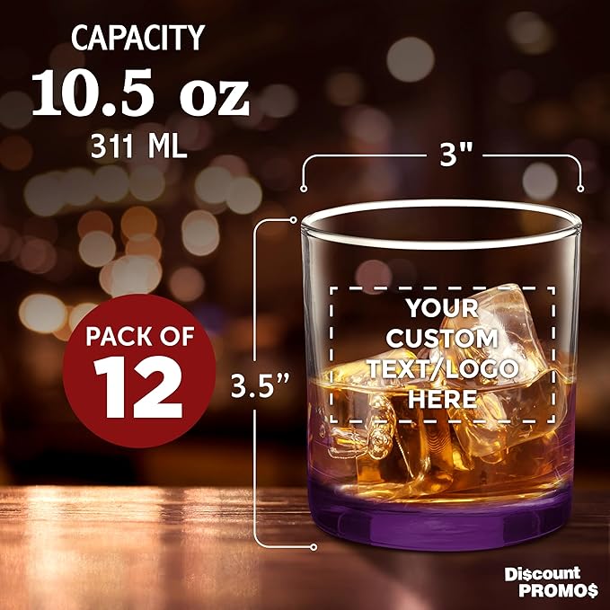 Custom Lexington Rocks Whiskey Glass 10.5 oz, Set of 12, Personalized Bulk Pack - Perfect for Scotch, Bourbon, Whiskey, Cocktail - Purple