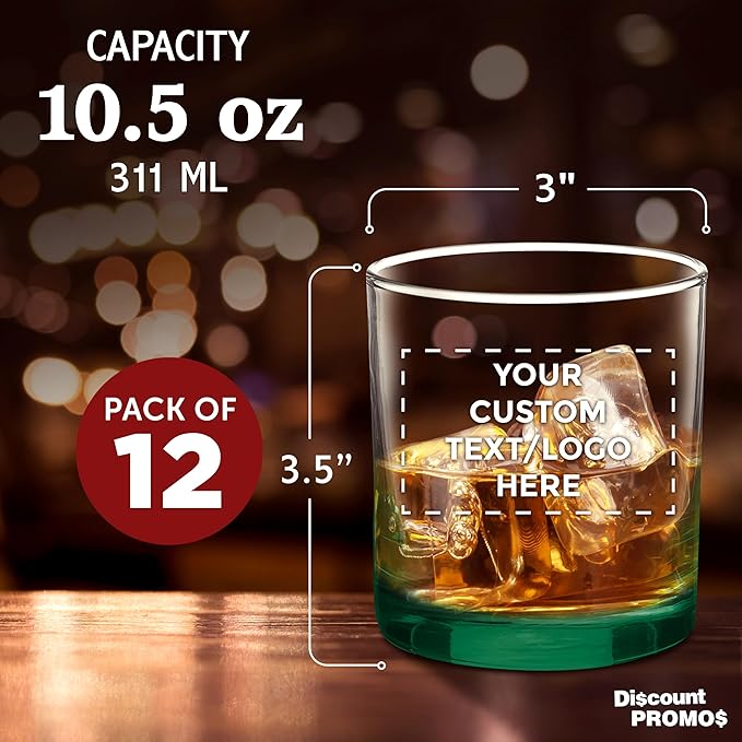 Custom Lexington Rocks Whiskey Glass 10.5 oz, Set of 12, Personalized Bulk Pack - Perfect for Scotch, Bourbon, Whiskey, Cocktail - Green