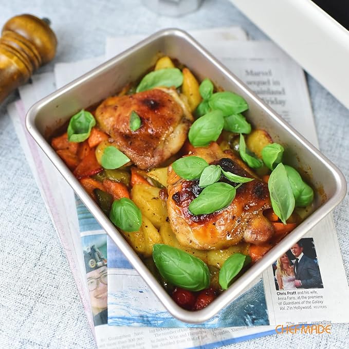 CHEFMADE 8.7-Inch Rectangle Cake Pan, Non-Stick Deep Dish Bakeware for Oven Baking (Champagne Gold)