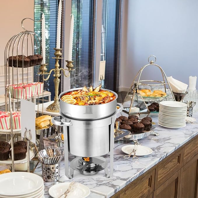 • 【PREMIUM MATERIAL】Our round soup chafer is made of food grade stainless steel material that is both sturdy and long-lasting. This ensures that they will not rust or corrode over time with proper care.