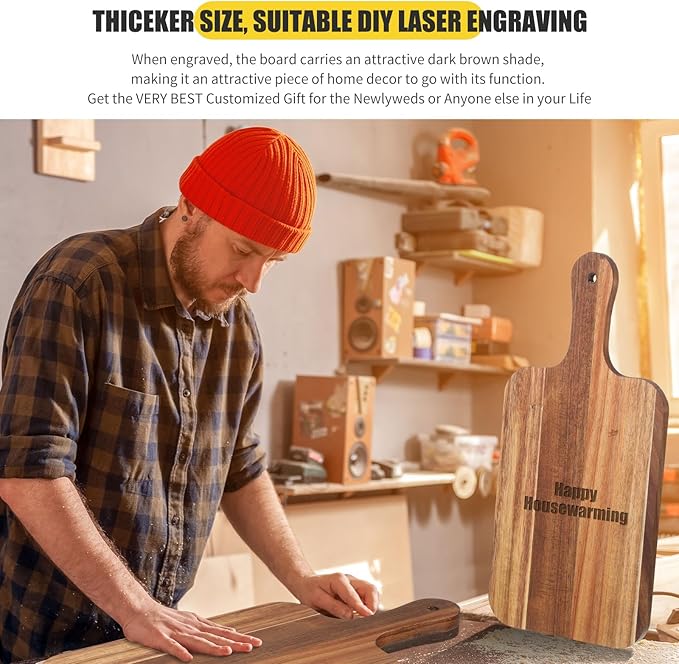 • Exquisite Gift: the smooth surface of the wooden cutting board is ideal for laser engraving, you can engrave meaningful words or designs on it; These decorative cutting board are nice gifts for your friends and family on weddings, anniversaries, housewarmings, Mother's Day, Thanksgiving, Christmas or other festivals
