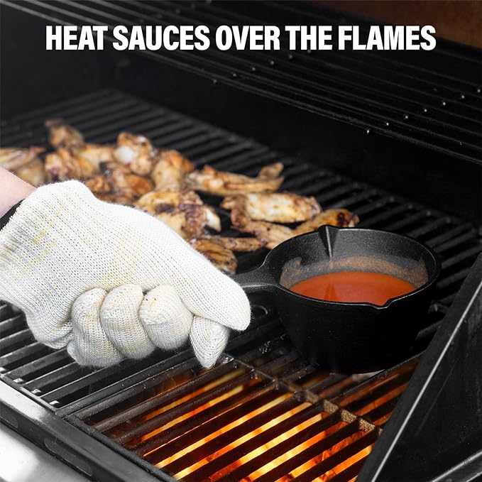 • Pre-Seasoned Basting Pot: Our cast iron basting pot is pre-seasoned with a thin layer of oil, ensuring that it's ready to use right out of the box. Plus, its durable construction means that it will stand up to high heat and frequent use for years to come, making it a reliable tool in your outdoor cooking arsenal.