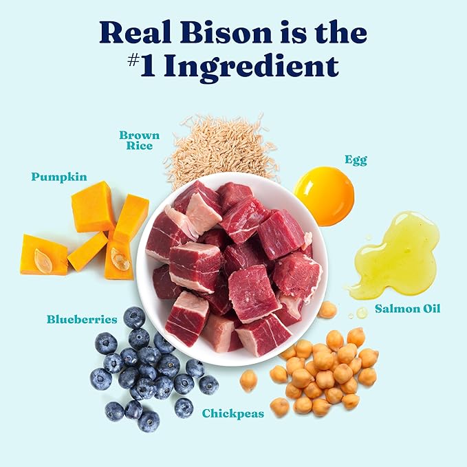 • Bison Protein for Growing Puppies - This large breed puppy food has real pasture-raised USA bison as the first ingredient. Supports muscle growth & energy with high protein & healthy fats—ideal for golden retrievers, German shepherds & big breed pups