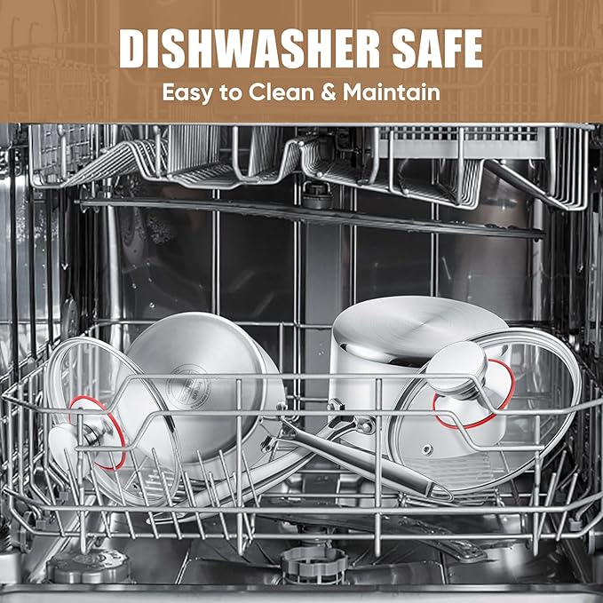 • 18/10 STAINLESS STEEL - Constructed of premium quality 18/10 stainless steel without chemical coating, Won't corrode, rust, or react with food, No warping, cracking or chipping, No need to worry about toxic materials cooking into your food, Healthy and durable for all your daily kitchen cooking use, Easy to clean and dishwasher safe