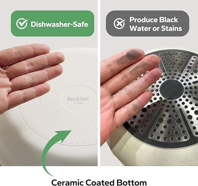 - Natural Dual-Sided Ceramic Coating: Redchef ceramic pots and pans set boasts an innovative dual-sided ceramic coating, inside and out; This advanced ceramic finish ensures effortless cleaning, allowing you to effortlessly wash both the interior and exterior of your pots and pans