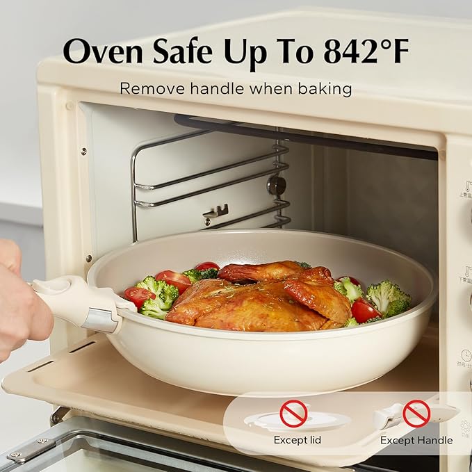 - Ultimate Convenience: Removable handle for the ultimate versatility– go from ALL kinds of stoves to the oven, to the grill, to the fridge, and onto the table in one click; The handle's detachability brings a new cooking style