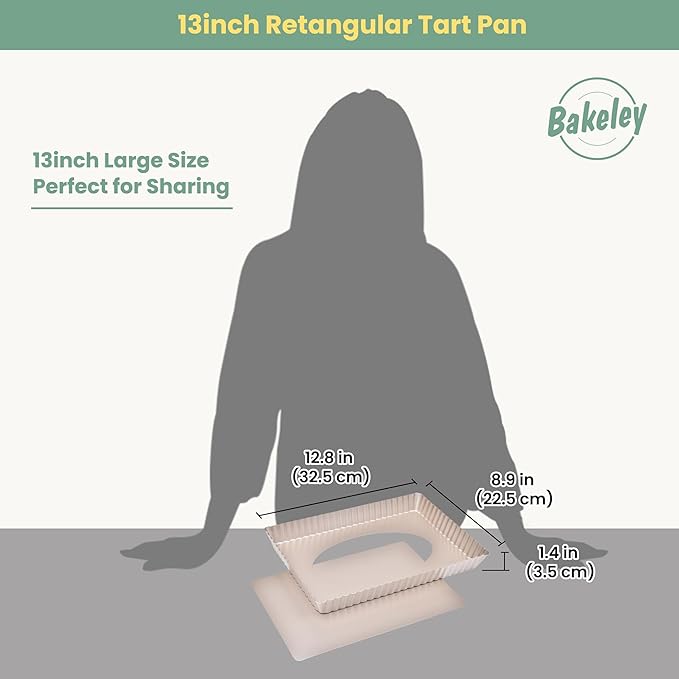 Rectangle Tart Pan, 13-Inch with Removable Loose Bottom Non-Stick Oblong Quiche Bakeware for Oven Baking (Champagne Gold)