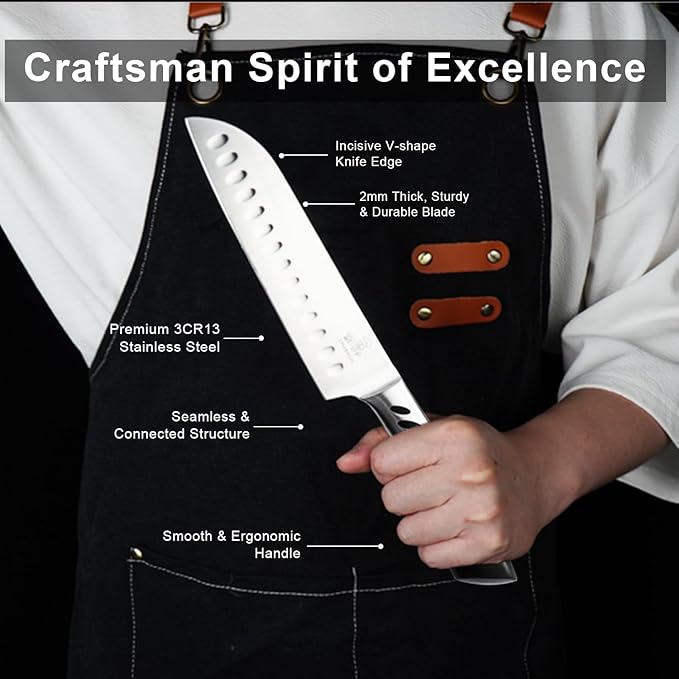• Craftsman spirit of excellence: Professional satin-polished and Stainless Steel blades are precision cut and finely ground for long-term use and razor-sharp. After many trials and careful calculations, premium Chef Knife Set, Stainless steel kitchen knife, Utility Knife are obtained for easy and convenient cutting.