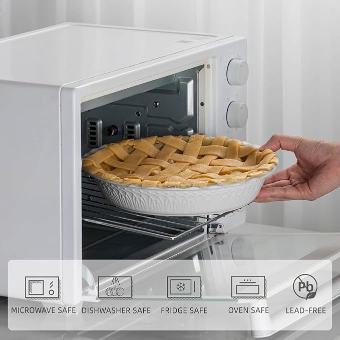 • Microwave, Oven & Dishwasher Safe: Smooth glazed surface makes this pie pan for baking 9 inch easy to clean. Just put it directly into the dishwasher and it comes out spotless.