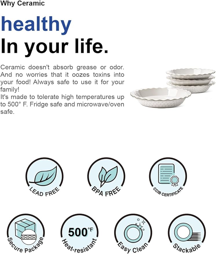 • High Quality Ceramic Material:The ceramic pie dish elevates pie baking from ordinary to art as it evenly distributes the heat during baking. The highly resistant glaze does not absorb food odors or flavors