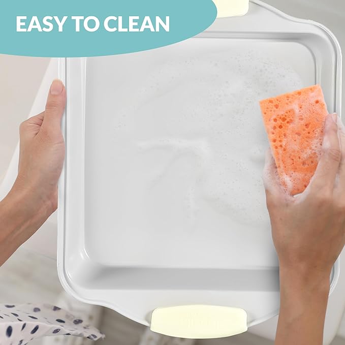 • EASY CLEANUP: Boxiki Kitchen 8 x 8 brownie pan coating protects against scratches, abrasions, staining and corrosion and cleanup in a snap; hand wash nonsitck ceramic baking pan without scrubbing or scouring; for best reuslts, use parchment paper sheets or silicone baking mats