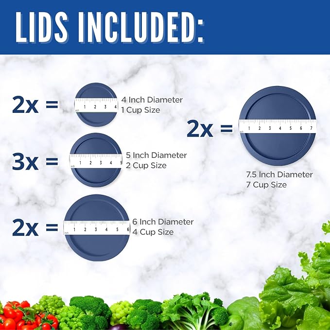Replacement Lids for Pyrex Glass Foood Storage Containers Containers Round (2) 1-Cup (3) 2-Cup (2) 4-Cup (2) 7-Cup (Blue)