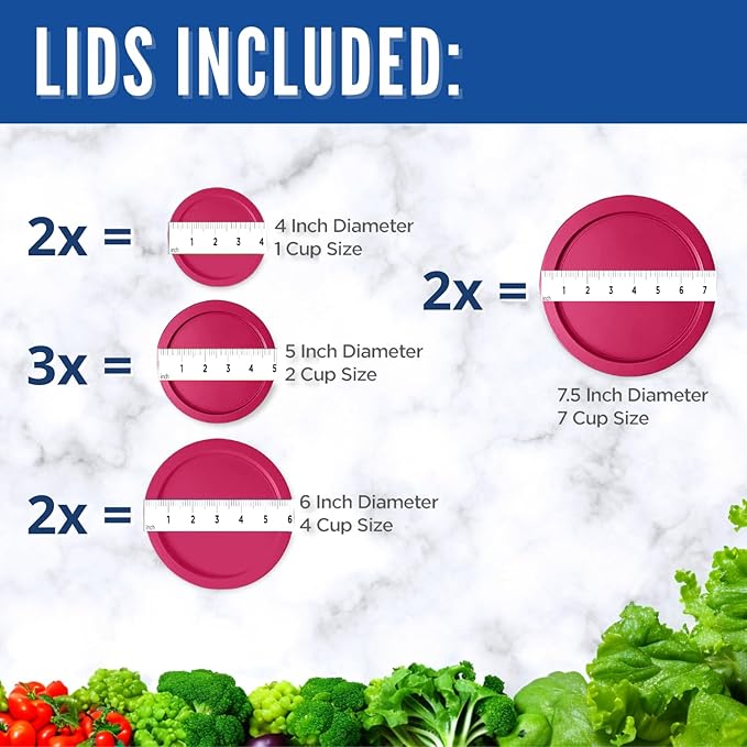 Replacement Lids for Pyrex Glass Foood Storage Containers Containers Round (2) 1-Cup (3) 2-Cup (2) 4-Cup (2) 7-Cup (Fuchsia)