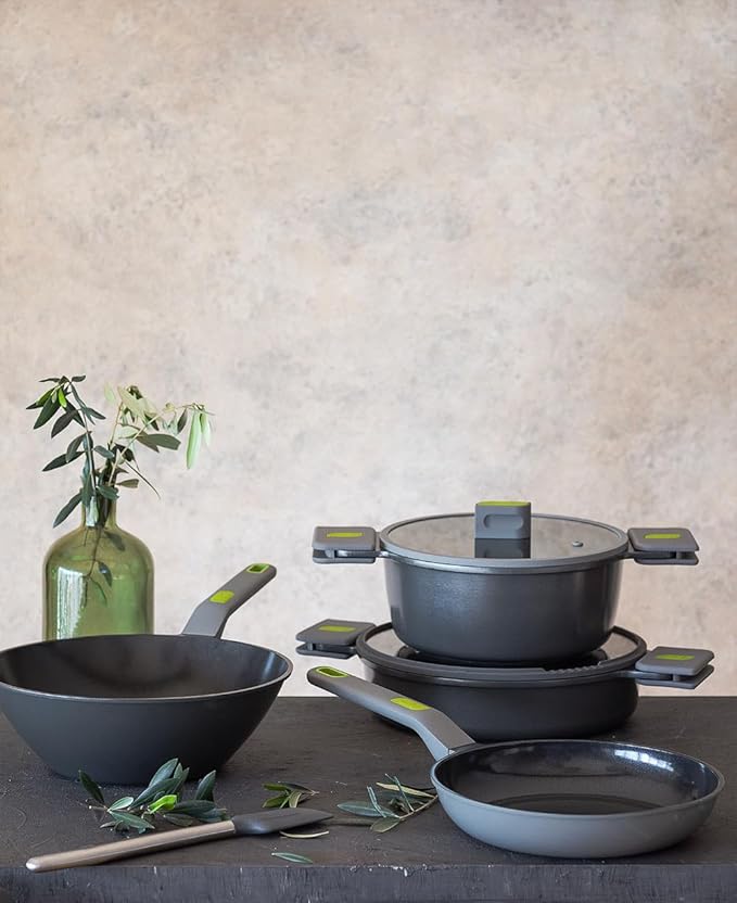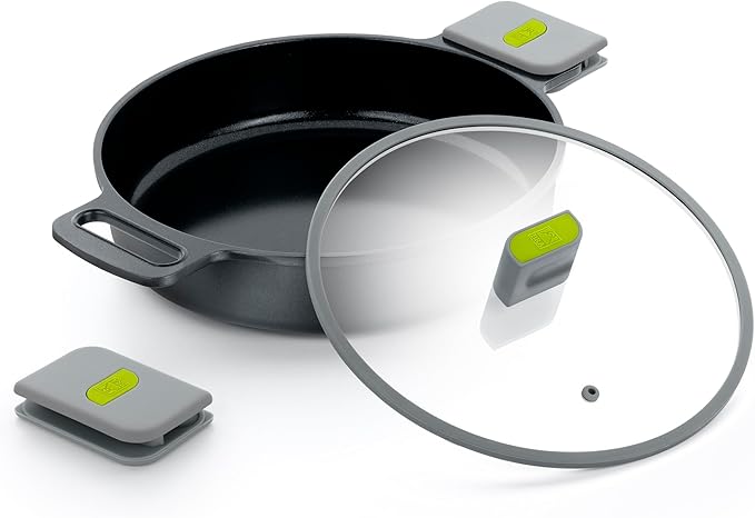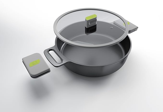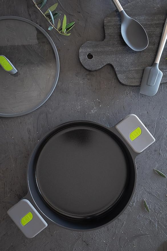 • MODERN & EASY TO CLEAN: A gray finish with green inserts gives this casserole a modern style. The removable silicone handles bring a safe & comfortable grip. It is easy to clean & dishwasher safe