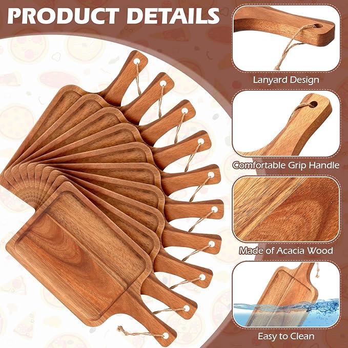 Tanlade 16 Pcs Acacia Wood Cutting Board with Handle Chopping Boards Decorative Charcuterie Platter Pizza Bread Cheese Fruit Serving Tray for Kitchen Counter Table Christmas Decorate(12 x 6 Inch)