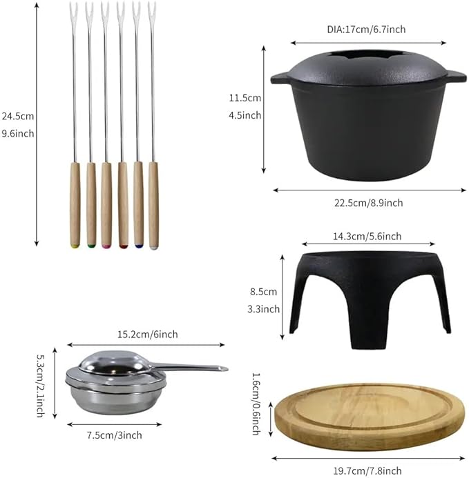 • GIFTABLE: black cast iron fondue set makes for a perfect gift for any occasion, impressing friends and loved ones with its timeless elegance and versatility. The best as a Christmas Gift.