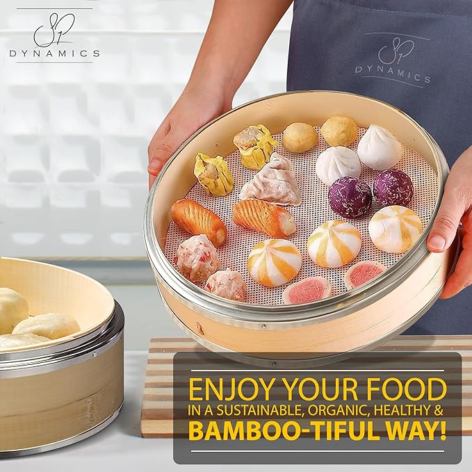 • 10-inch Chinese Steamer Bamboo : Perfectly sized for steaming a variety of foods, the 10-inch diameter provides ample space for your culinary creations.