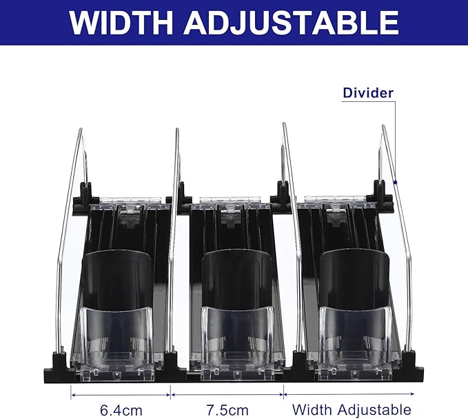 • Adjustable Width - Traditional drink organizer have a fixed width and fit only one width of beverage, which limits our choice of beverage. Drink dispenser for fridge solves this problem with its adjustable width design that allows you to put different widths of drinks in the fridge organization