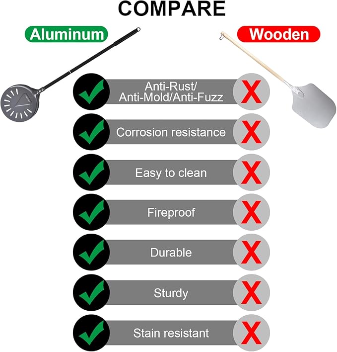 • LIGHTWEIGHT, STURDY, AND LONG-LASTING: Crafted from hard anodized aluminum with a sandblasted finish, this pizza turning peel is made from commercial-grade material that is resistant to corrosion. Its durability guarantees years of reliable use, providing you with the confidence to rely on it time and time again.