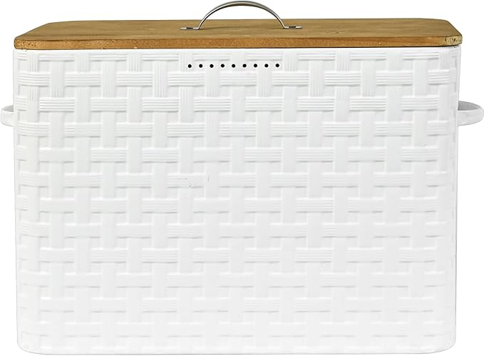• With its charming farmhouse design and rustic wooden lid, our bread box adds a touch of country styling to your kitchen decor. It's not just a bread holder; it's a statement piece that elevates the aesthetic of your space. These bread holders can also be utilized in commercial spaces - from offices to lounges, restaurants, delis, bakeries, and coffee shops.