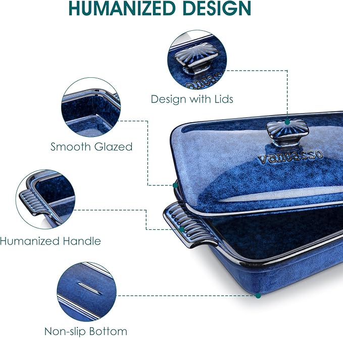vancasso Starry Casserole Dish With Lid, 1.9 Quart Deep Lasagna Pan Ceramic Bakeware Covered Casserole Dish Blue