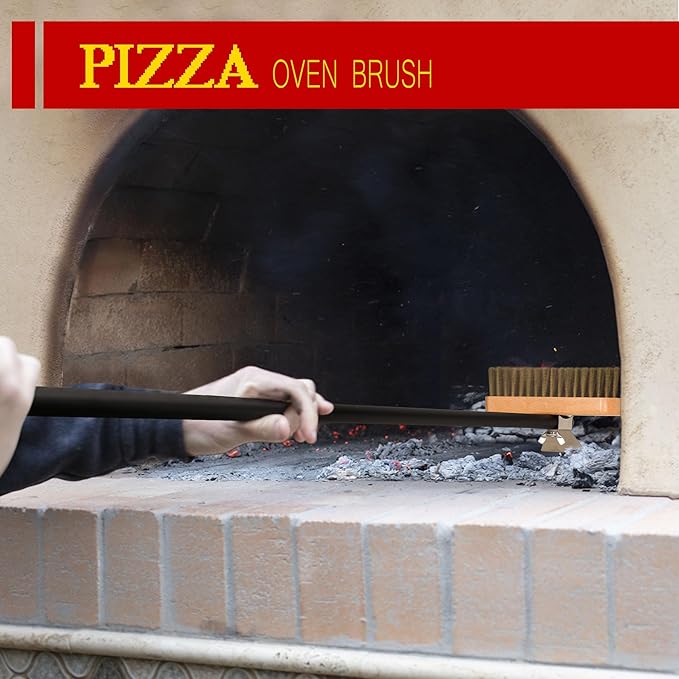 • The oven brush has a detachable 32 "long handle and a metal scraper on the back, making it perfect for penetrating deep into the pizza oven, removing residual burnt food, and thoroughly cleaning the back of the oven within a safe distance.