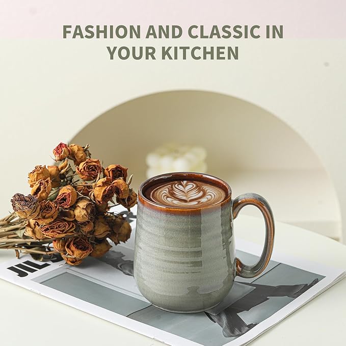 • JUST THE RIGHT SIZE: Whether you enjoy a morning coffee and breakfast at home or entertain friends with a milk beverage, this ceramic coffee mugs set of 4 with large handles is the perfect choice