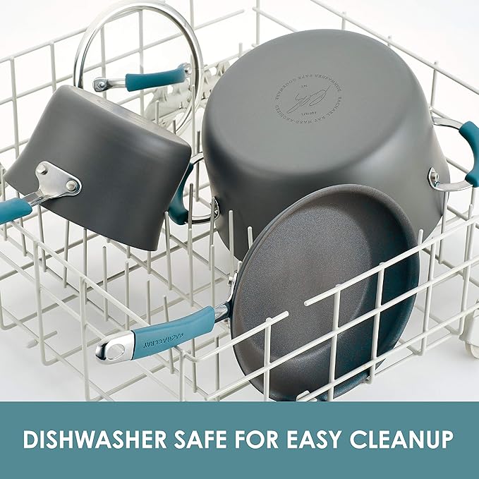 • Product 2: DURABLE DESIGN: Nonstick pots and pans from Rachael Ray are crafted with durable aluminum and sturdy hard enamel porcelain exteriors to stand up to busy kitchens