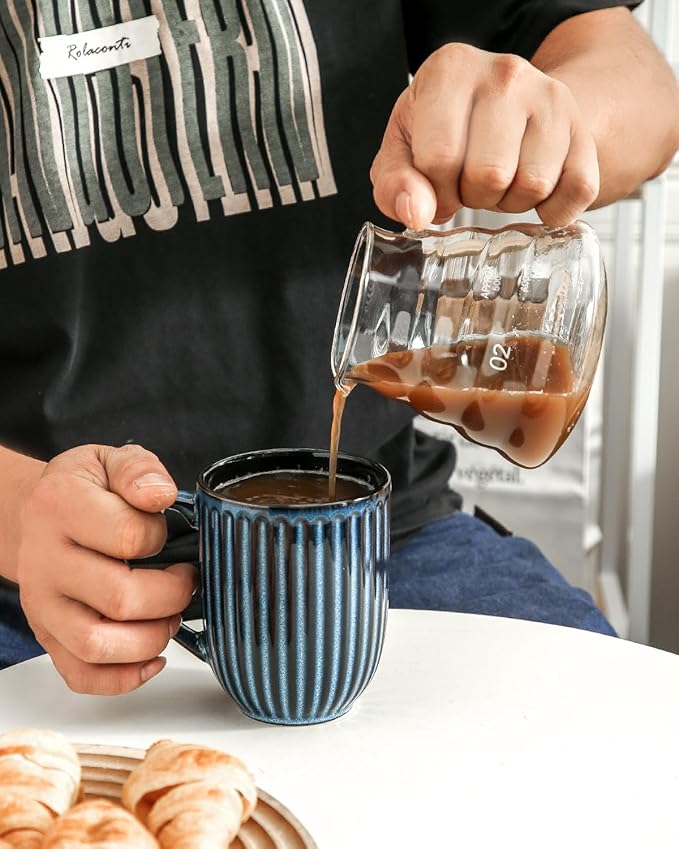 • Exquisite Ribbed Design: Elevate your coffee experience with these stunning mugs, featuring a vertical striped embossed texture for added elegance and uniqueness. The artistic design feels wonderful in hand and makes a captivating presentation on your table
