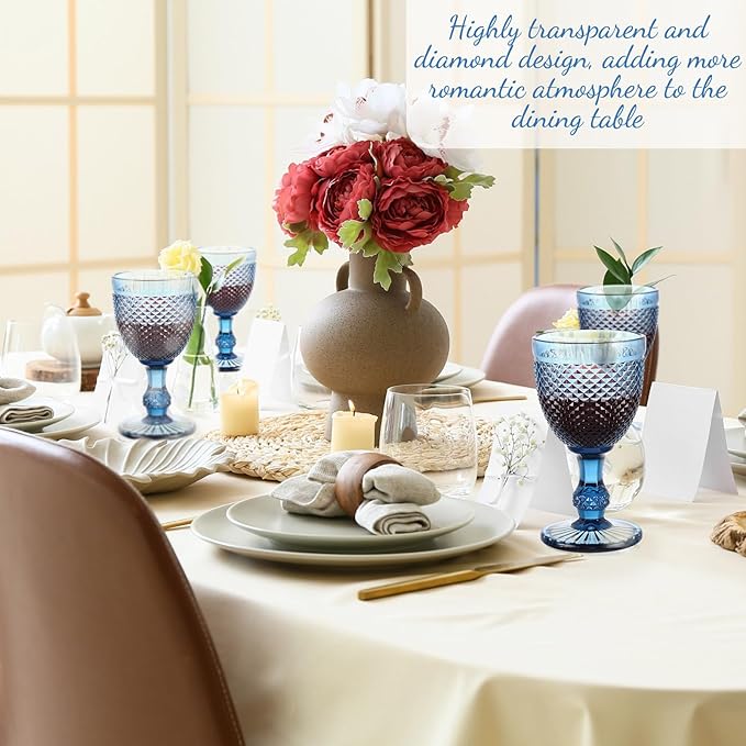 • Diamond Design: the diamond design of this sapphire glassware is an eye catching decoration, and the matching sapphire color is retro and exquisite; The glass goblet looks like a fine work of art when not in use, presenting a creative and elegant style for most occasions