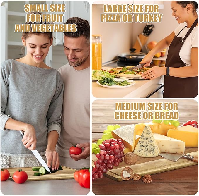 • Wide Application: our cutting boards are large and big enough to handle large roasts, such as turkey and ham, etc., ideal for cutting vegetables, bread, meat, cheese or other foods, they can also be ideal gifts for housewarming parties choose