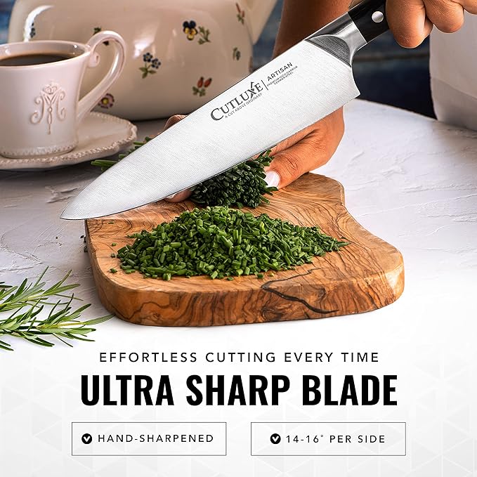 Cutluxe Chef Knife Set, 3 PCS Professional Chef's Knife Set – Razor Sharp German Steel, Full Tang, Ergonomic Handles - Artisan Series